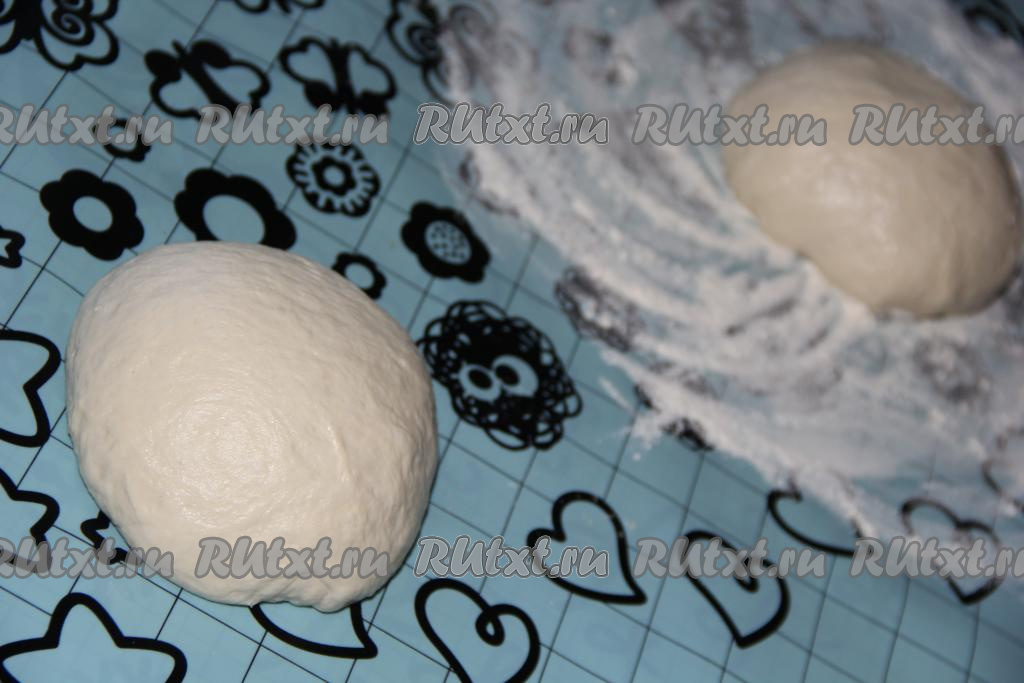 Тесто обмять и разделить на две равные части.