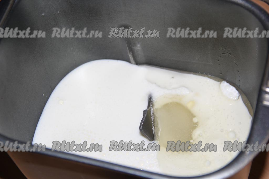 Я замес теста сделала в хлебопечке, для этого нужно влить в ведёрко кефир, добавить сахар и масло.
