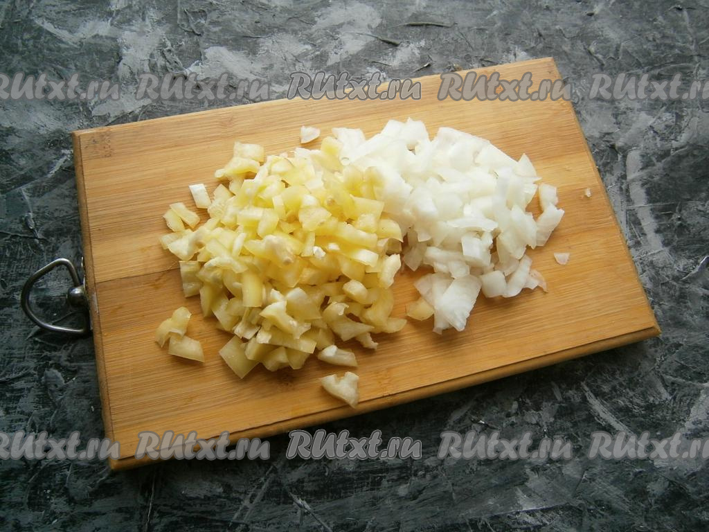 Сладкий болгарский перец и лук мелко нарезать.