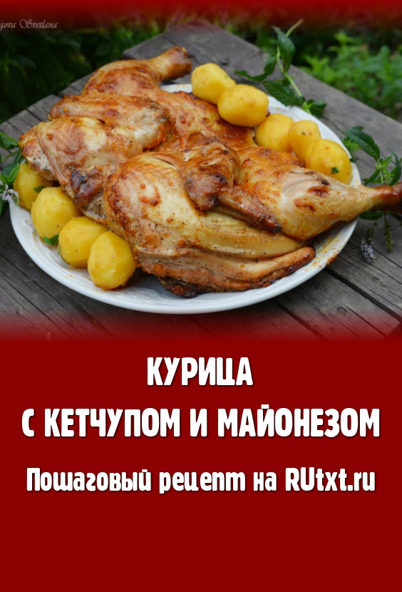 Вкусную, сочную, аппетитную курицу, запечённую с кетчупом и майонезом в духовке, подаём с гарниром к столу. Это блюдо понравится всей семье, проверено!