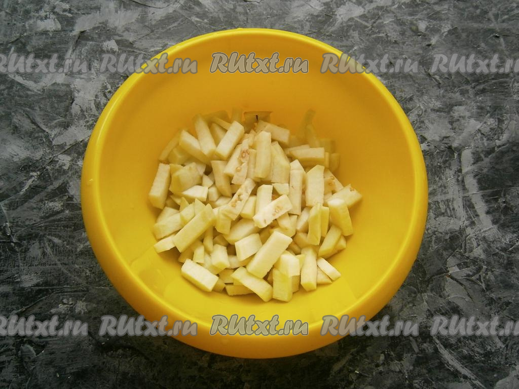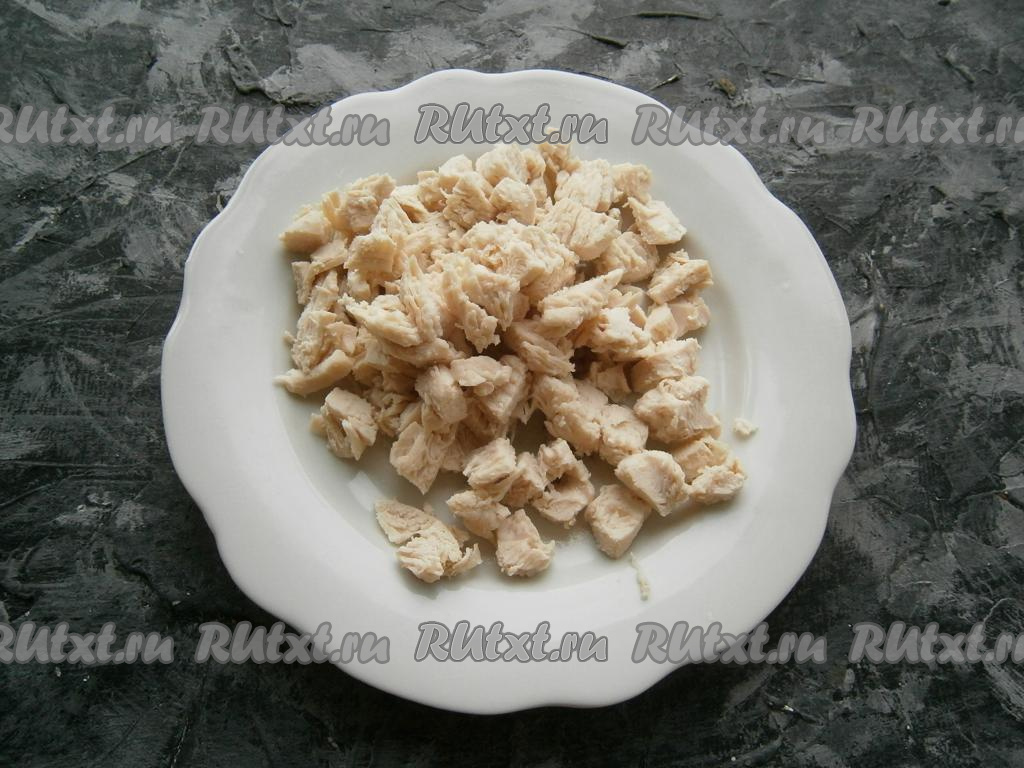 Отделить мясо от костей (если они есть) и нарезать небольшими кусочками.