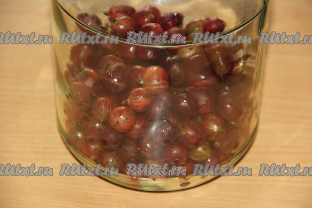 Ягоды перебрать и хорошо промыть. Банку предварительно хорошо вымыть и простерилизовать любым способом. Выложить ягоды крыжовника в банку.