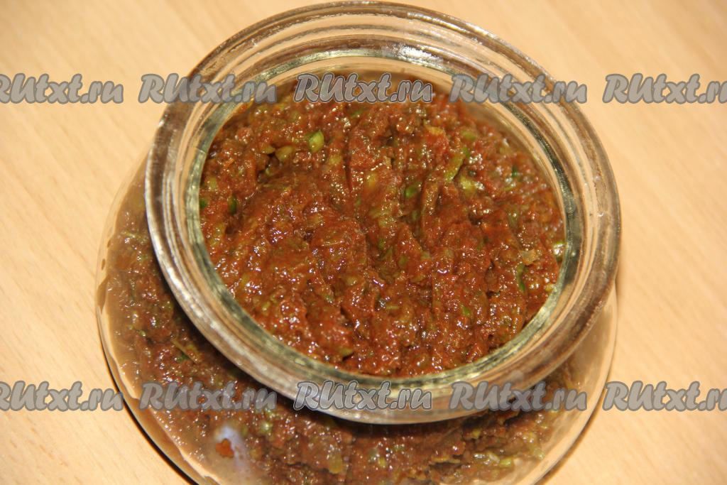 Аджику переложить в стеклянную баночку с крышкой и поставить в холодильник. Такая аджика может храниться в холодильнике в течение двух недель.