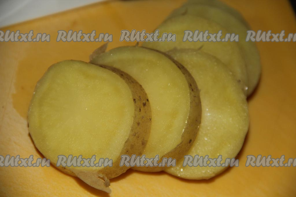 Картошку нарезать на кружочки толщиной, примерно, 1-1,5 см.