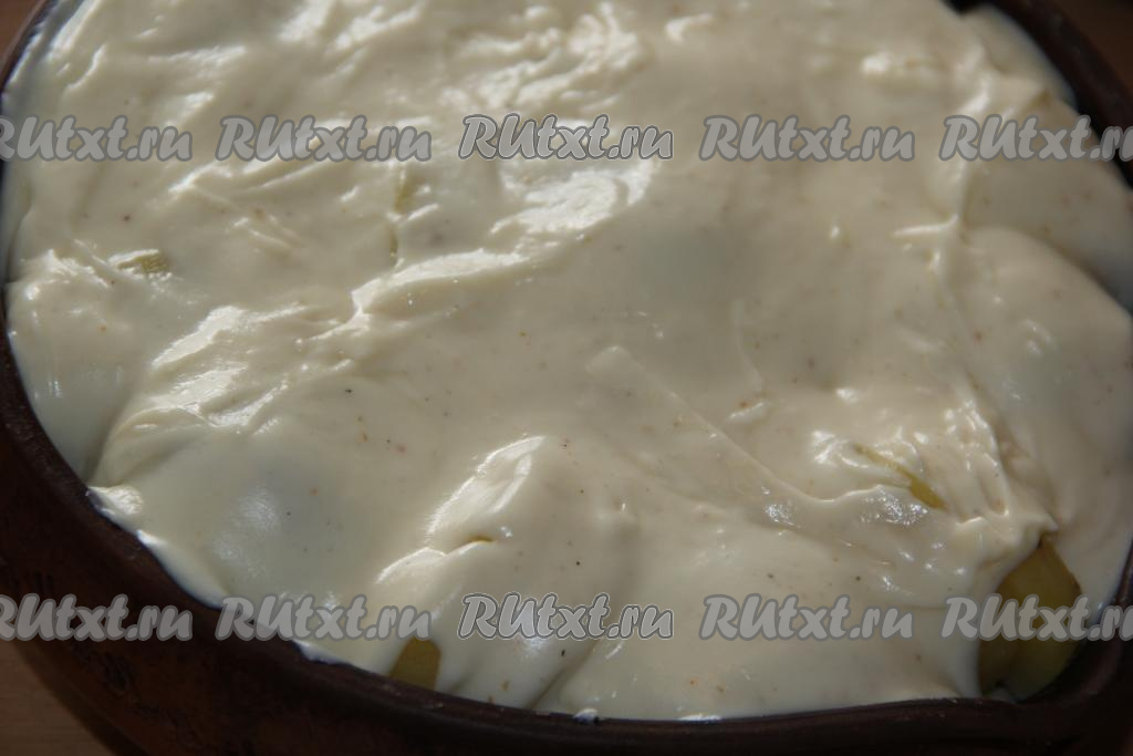 Готовым соусом залить картошку и фрикадельки.