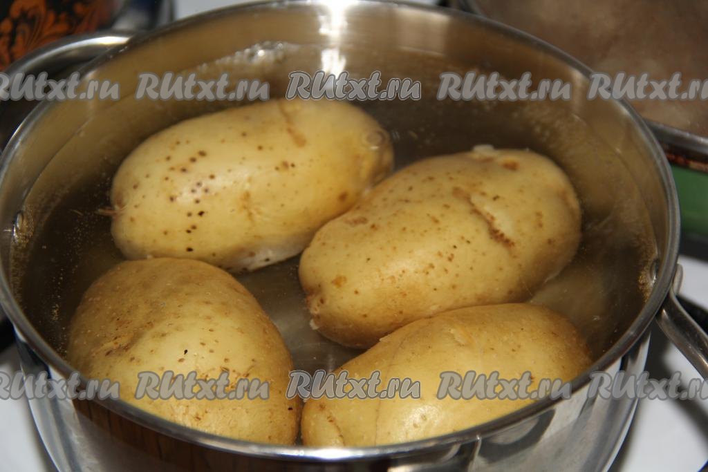 Я использовала молодой картофель и не чистила его от кожуры, но при этом тщательно вымыла клубни. Если вы используете не молодую картошку, тогда очистите её от кожуры. В кастрюле вскипятить воду, выключить огонь и опустить туда клубни картофеля на 10 минут, затем достать.