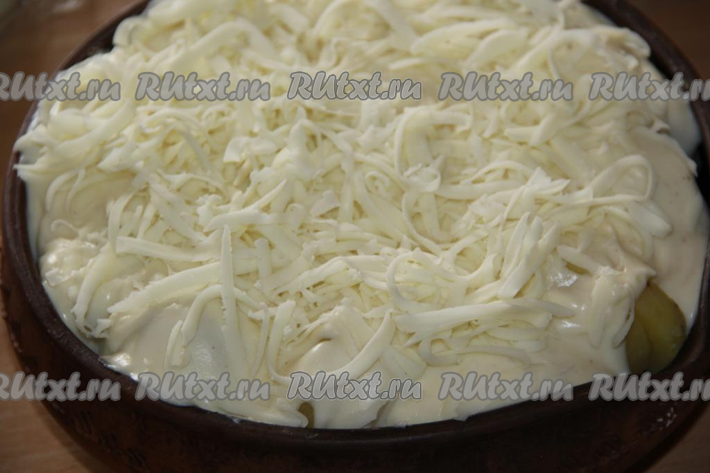 Сыр натереть на тёрке и выложить поверх картошки и фрикаделек. Я использовала моцареллу. Поставить форму в разогретую духовку и готовить минут 30 при температуре 200 градусов.