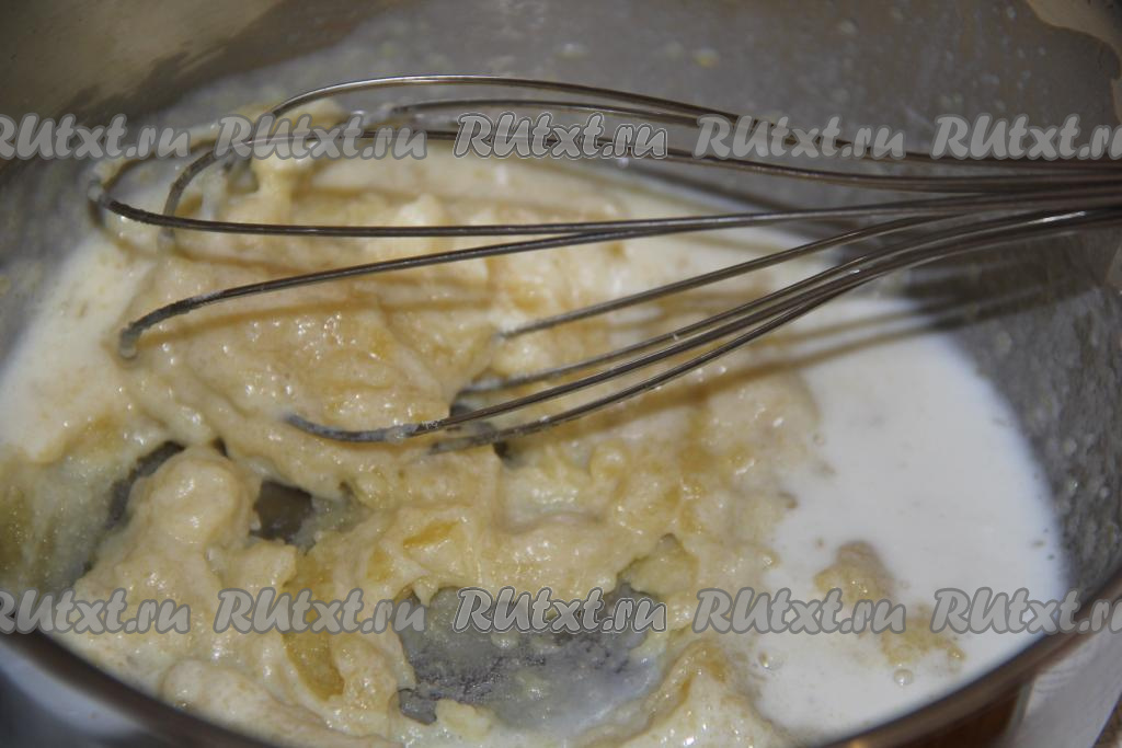 С помощью венчика перемешать муку с маслом на небольшом огне, а затем небольшими порциями вливать молоко и тщательно перемешивать.