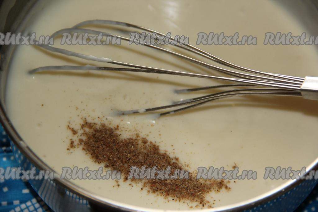 Как только всё молоко будет влито, должна получиться ровная, без комочков масса. Довести соус до кипения на медленном огне, постоянно помешивая.