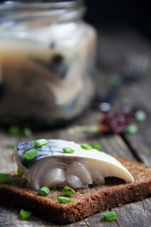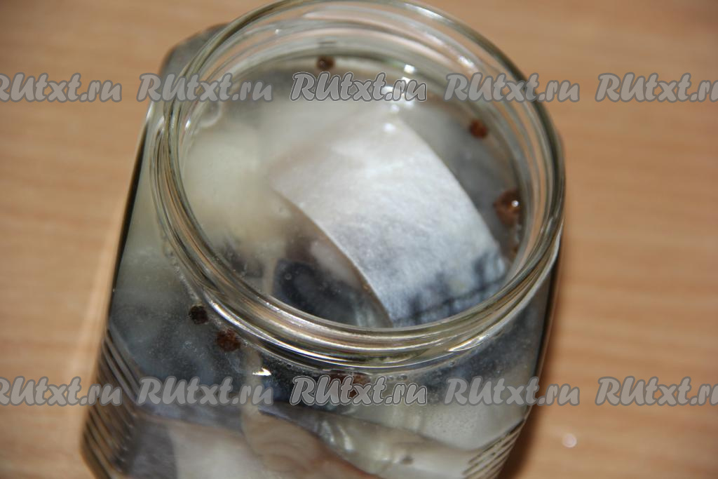 Кусочки скумбрии в банке полностью залить получившимся соляным раствором. Закрыть банку крышкой и поставить на сутки в холодильник.