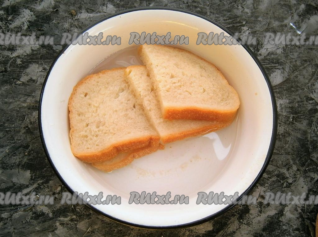Хлеб предварительно замочить в очищенной воде на 5 минут.