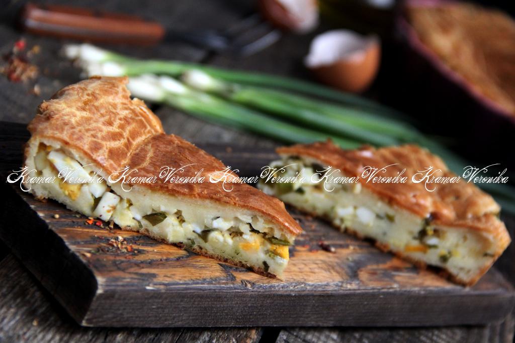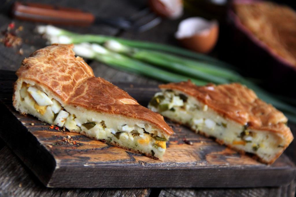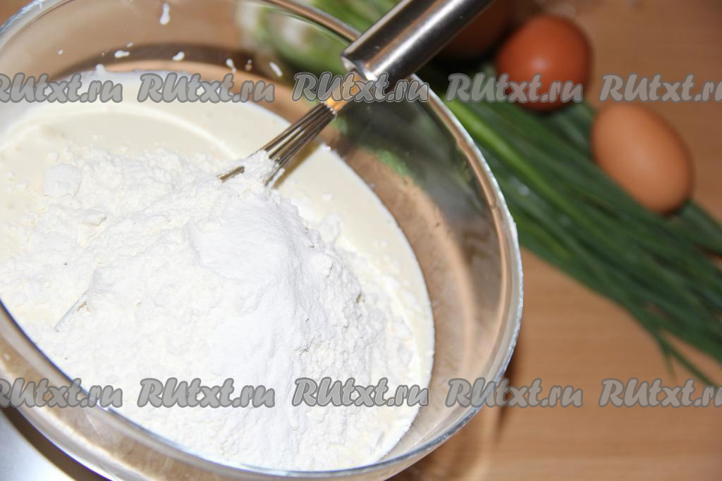 Для приготовления заливного пирога с яйцами и зелёным луком в духовке потребуется: