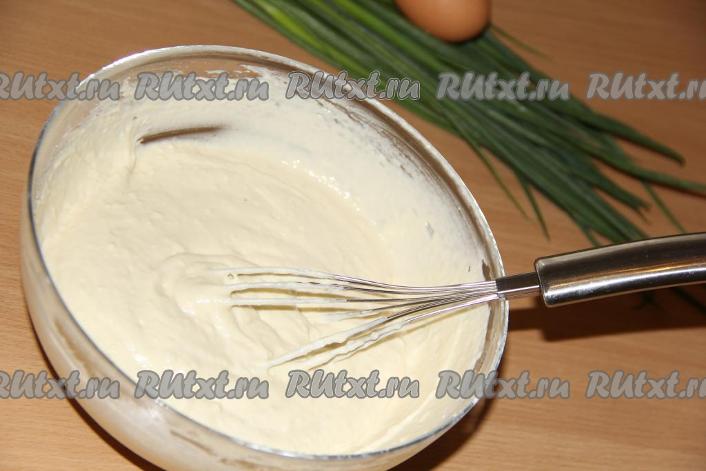 Перемешать тесто, оно должно получиться однородным, не очень густым (будет напоминать тесто на оладьи).