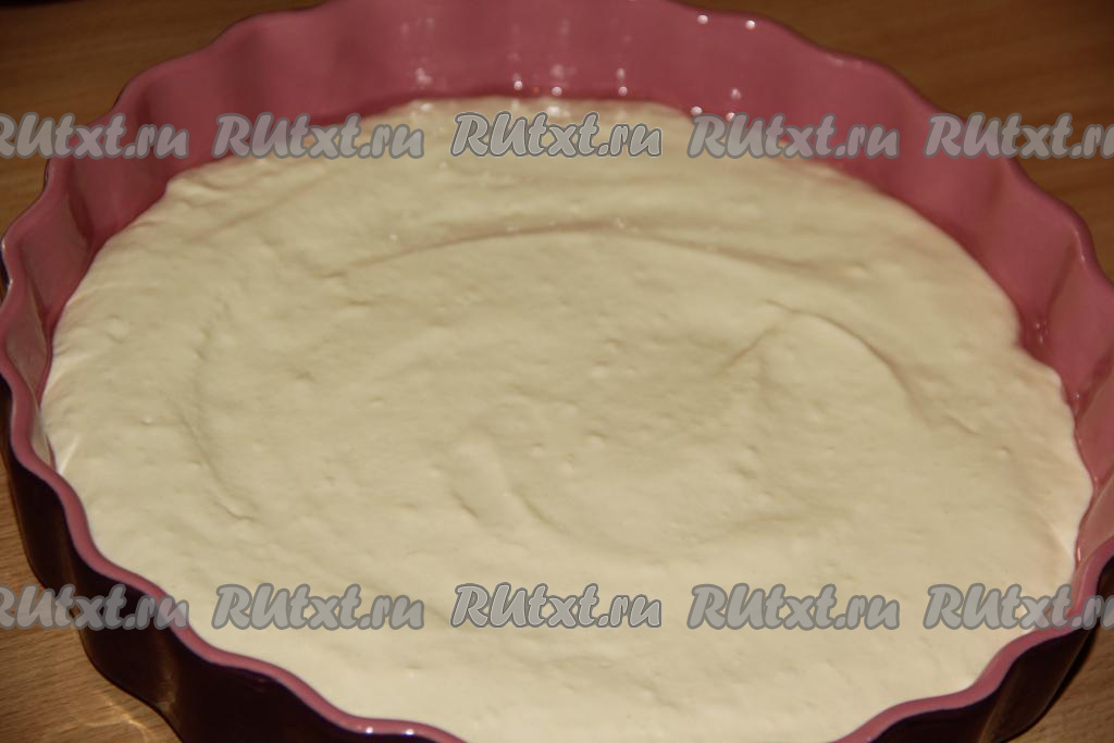 На дно формы для выпечки (диаметр моей формы 26 см) вылить 1/2 теста.