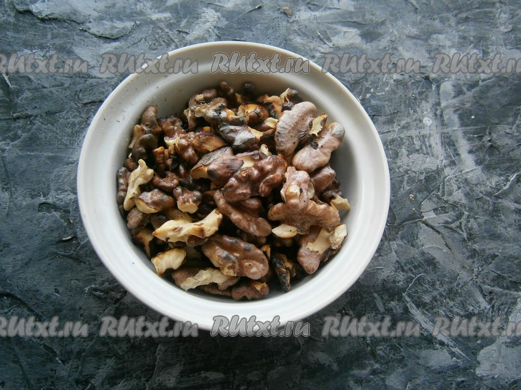 Грецкие орехи поджарить на сухой сковороде, остудить.