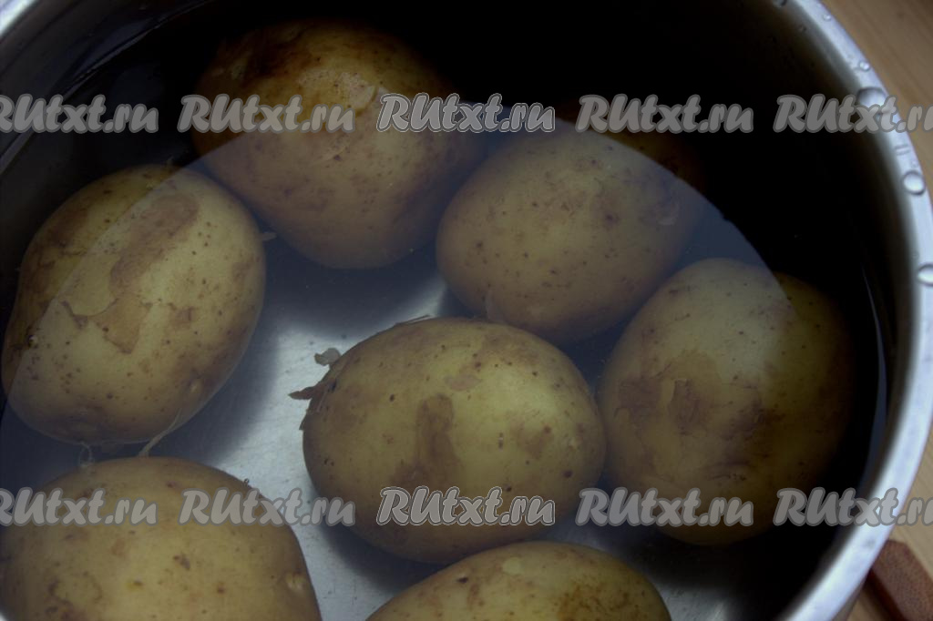 Картофель тщательно вымыть, поместить в кастрюлю, залить холодной водой и поставить на огонь. Как только вода закипит, уменьшить огонь до минимума, накрыть кастрюлю крышкой и варить картошку 25-30 минут (до готовности). Готовность картошки определяется при помощи вилки (или ножа) - если клубень легко протыкается, значит картофель сварился.
