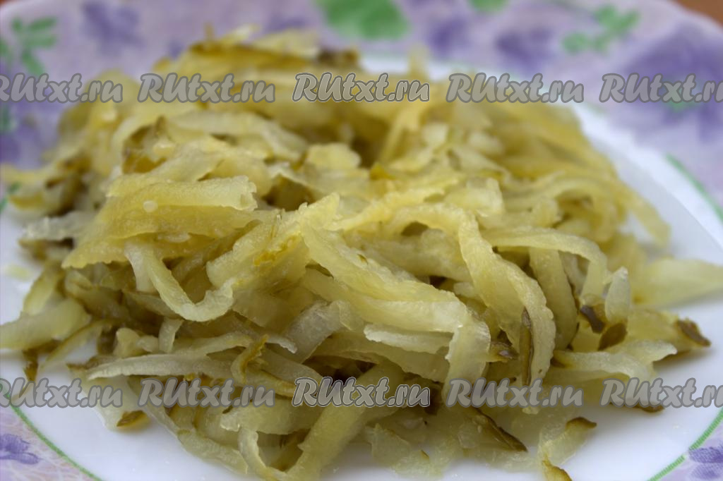 Солёные огурцы натереть на средней тёрке (по желанию, можно нарезать мелкими кубиками).