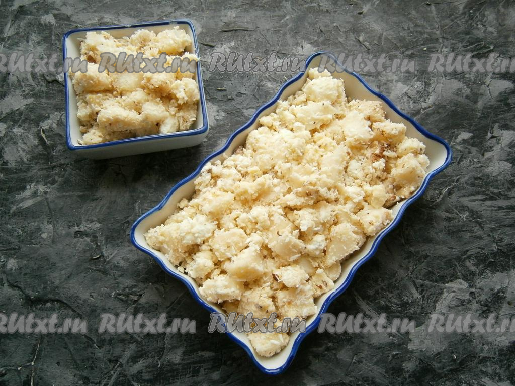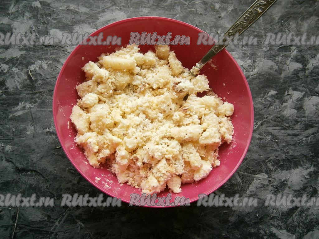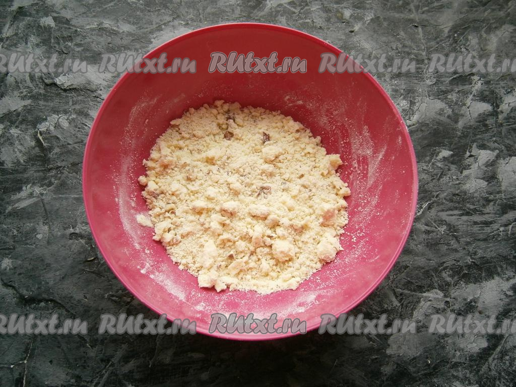 Руками перетереть получившуюся смесь в крошку, которая должна быть не слишком мелкой.