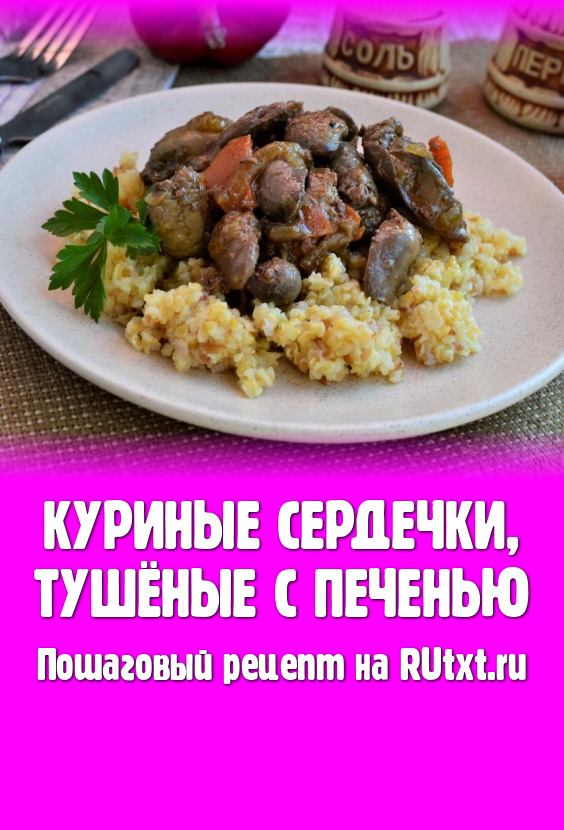 Часто куриные сердечки и куриная печень продаются в магазине вместе, поэтому я расскажу о том, как потушить одновременно эти субпродукты. Хотя для печенки и сердечек время готовки различно, но в данном рецепте тушатся они вместе (около 25-30 минут). Сразу скажу - печёнка остается сочной, несмотря на довольно длительное время приготовления, а сердечки успевают полностью приготовиться. Подать блюдо можно с любым гарниром, особенно вкусно с картофельным пюре, пшеничной или гречневой рассыпчатой кашей. Приготовьте куриные сердечки, тушёные с печенью, и вы ещё не раз вернётесь к этому рецепту!