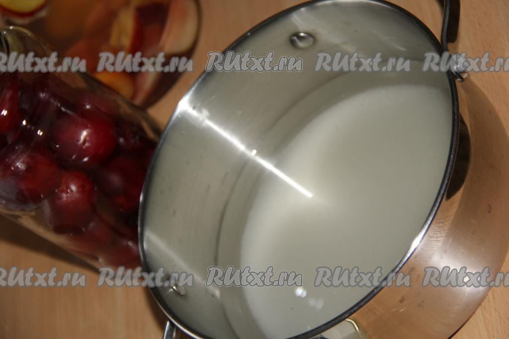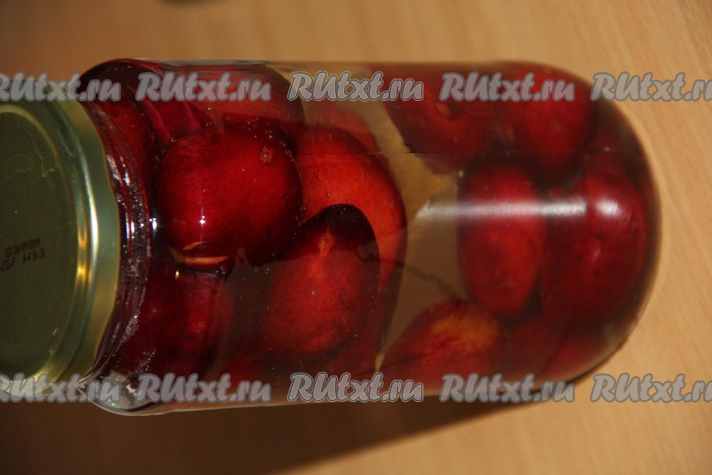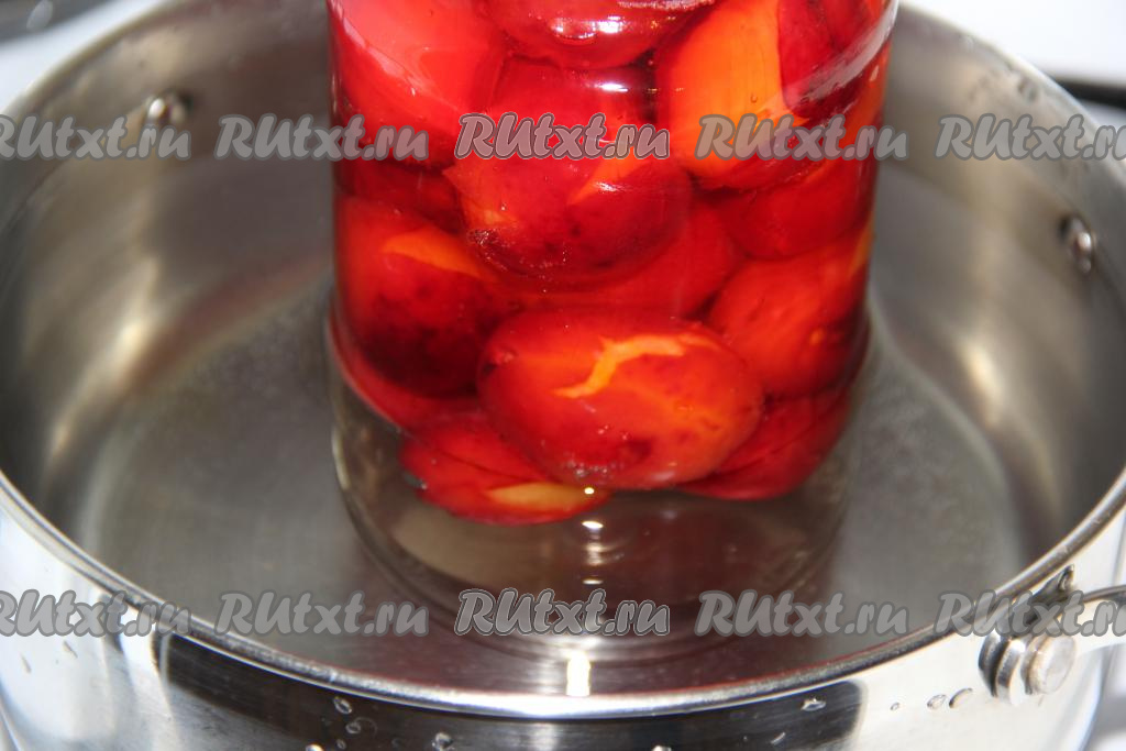 Залить сливы в банке горячим сахарным сиропом.