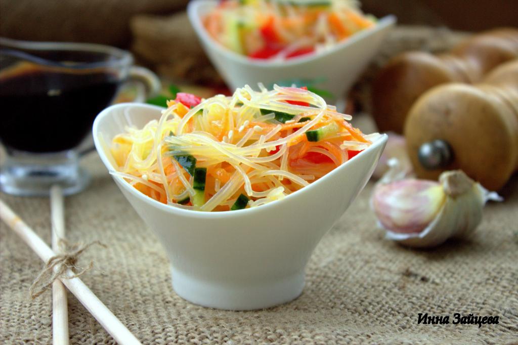 Салат с фунчозой, перцем и огурцом