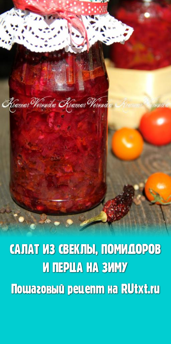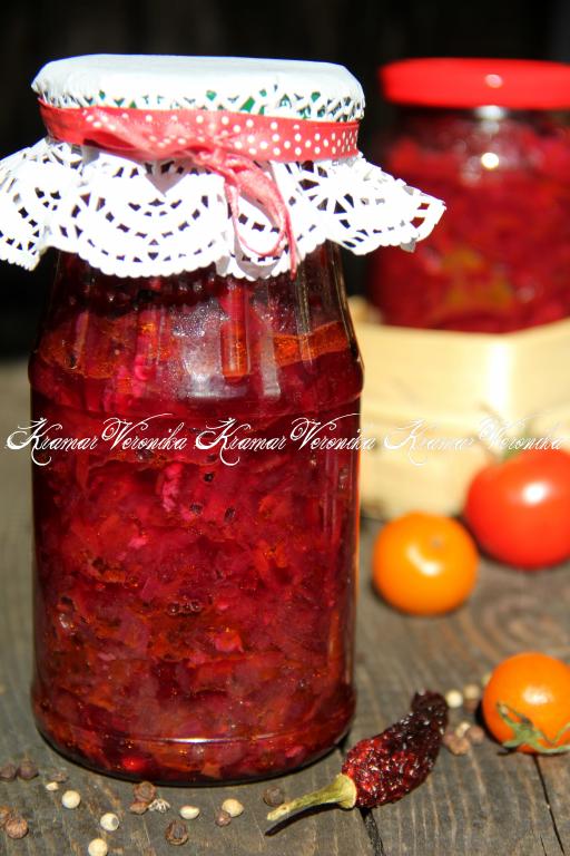 Салат из свеклы, помидоров и перца, приготовленный на зиму по этому рецепту, получился ярким, в меру острым и очень вкусным. Уверена, попробовав этот салатик, вы точно не разочаруетесь!