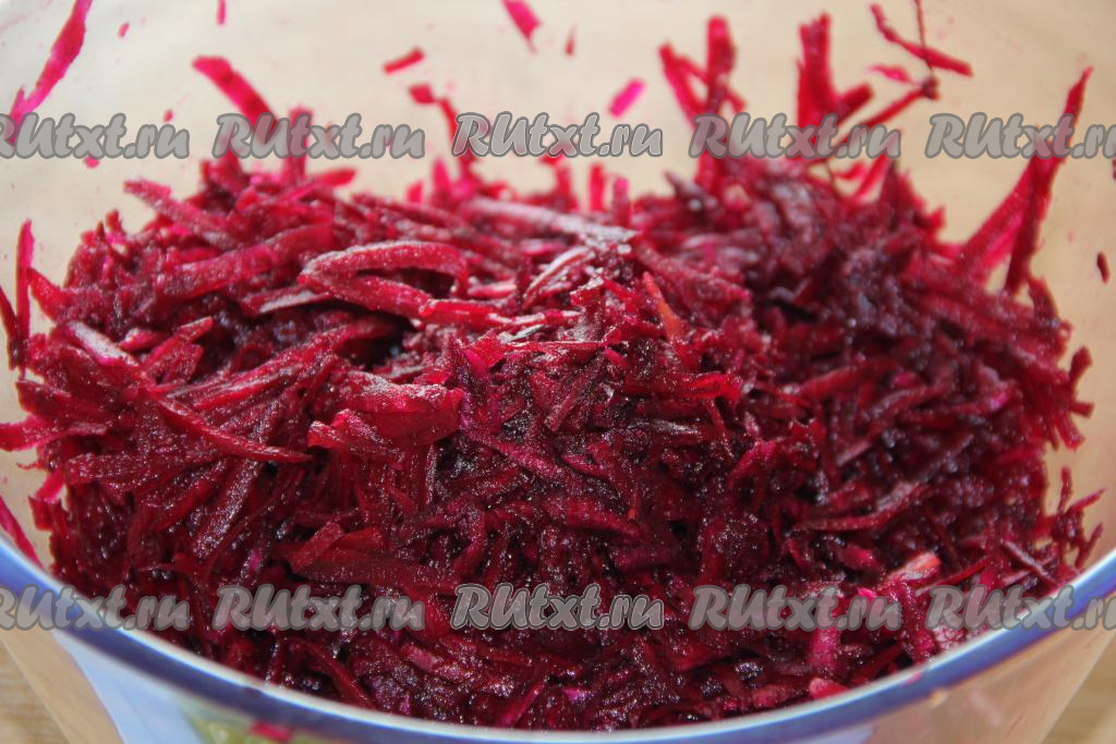 Свеклу очистить и натереть на крупной тёрке.