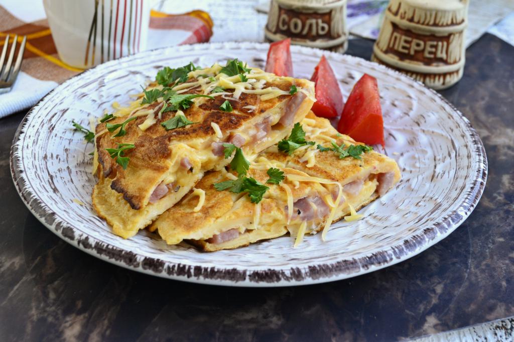 Рекомендую к завтраку приготовить на сковороде очень вкусный и сытный омлет с ветчиной и сыром. Омлет получается пышным и нежным, он складывается пополам, а внутри - сочная начинка. Подать это вкусное блюдо можно со свежими овощами, зеленью и, по желанию, с любимым соусом.