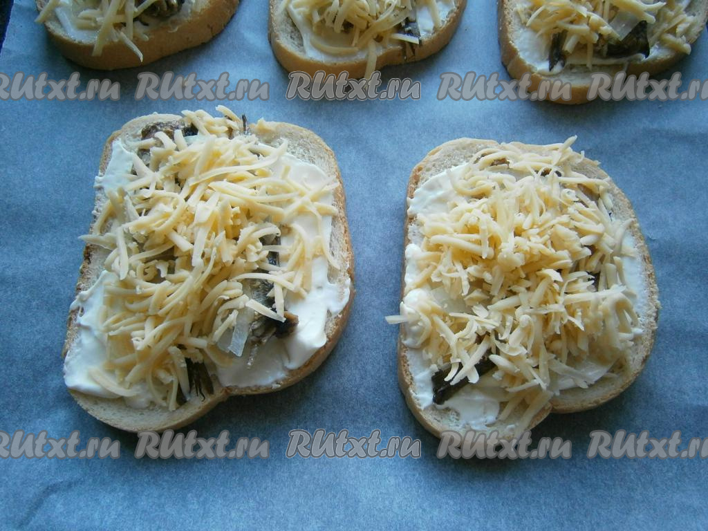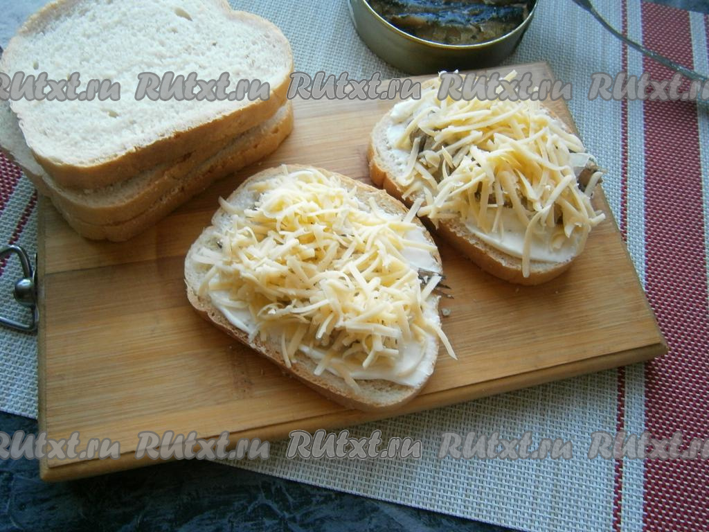 Сверху щедро посыпать бутерброды натёртым на средней (или мелкой) тёрке сыром.