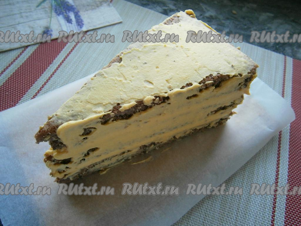 Собрать тортик, смазывая готовые бисквитные треугольники жёлтым кремом (слой крема должен быть около 1-1,5 см).