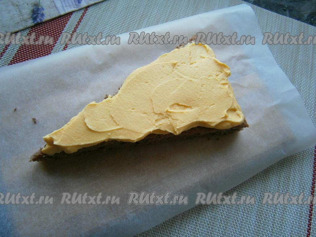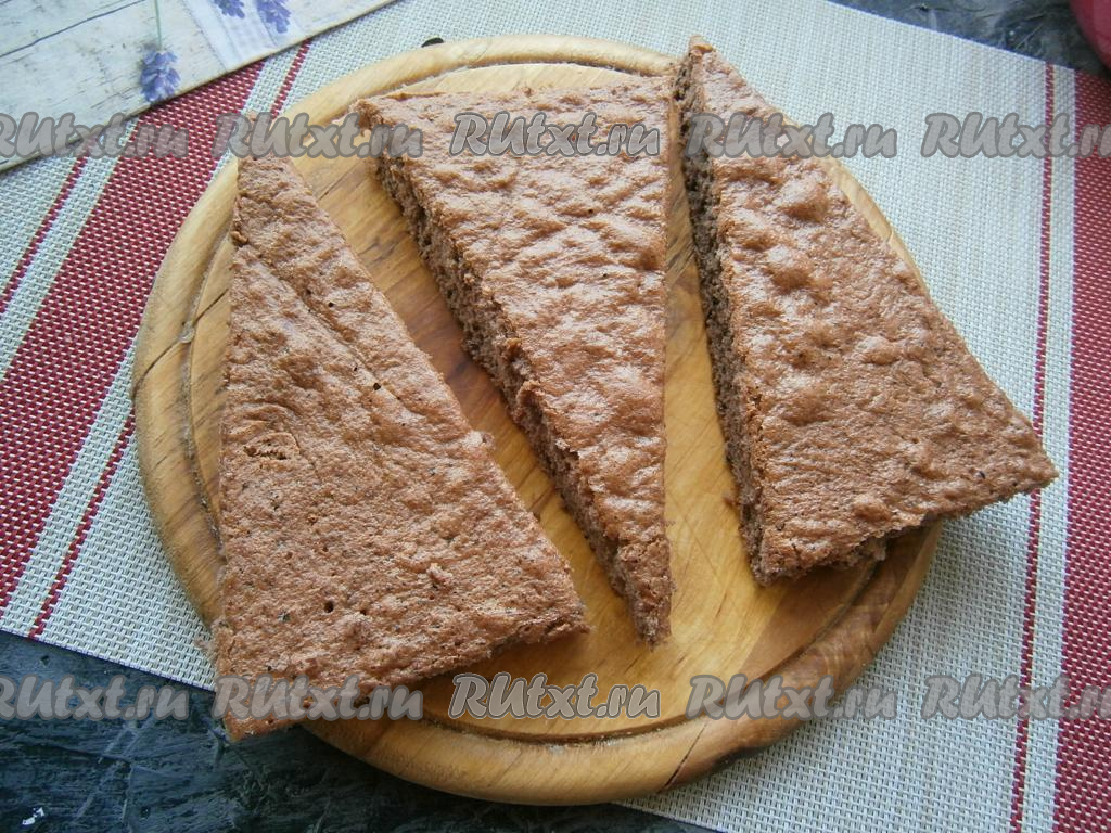 Разрезать бисквит на 3 одинаковых треугольника, похожих на куски отрезанного сыра.