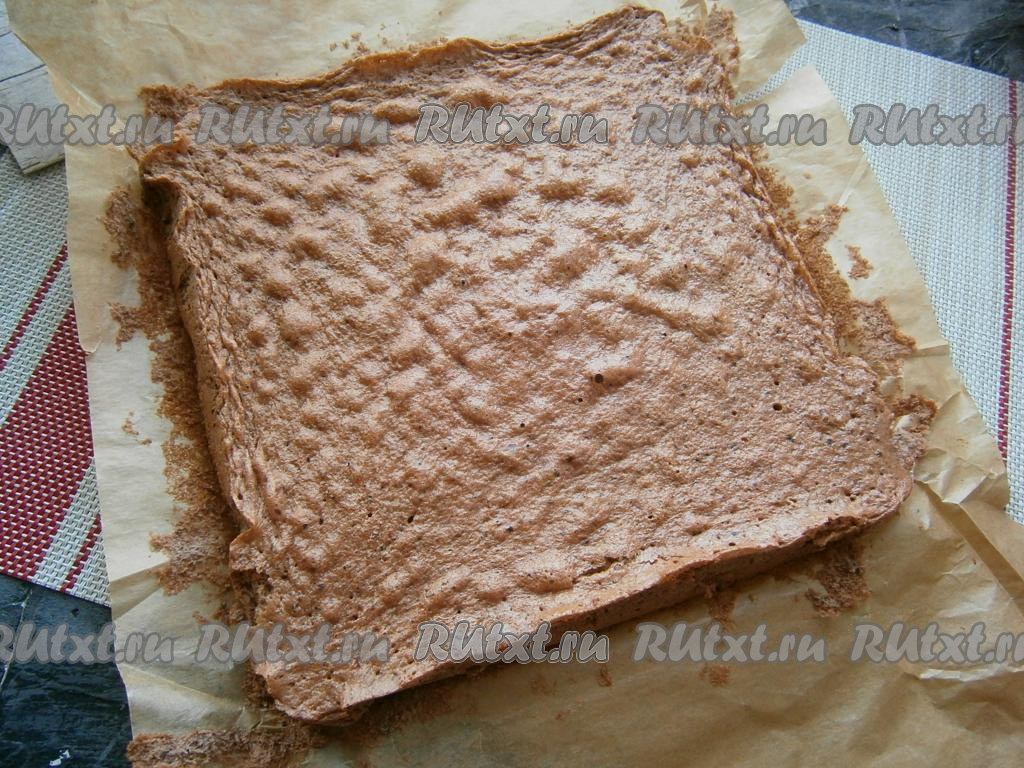 Бисквит получается ровным, без горочки и очень нежным. Дать бисквиту остыть, а затем аккуратно убрать пергамент. Ровно обрезать все края.