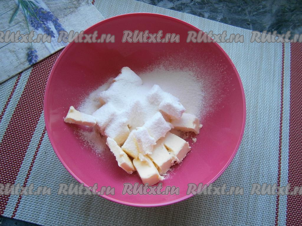 Если всё же крупинки творога останутся, протрите массу через мелкое сито. Далее нужно к заранее размягчённому сливочному маслу (для того чтобы масло размягчилось, заранее достаньте его из холодильника) добавить сахарную пудру.