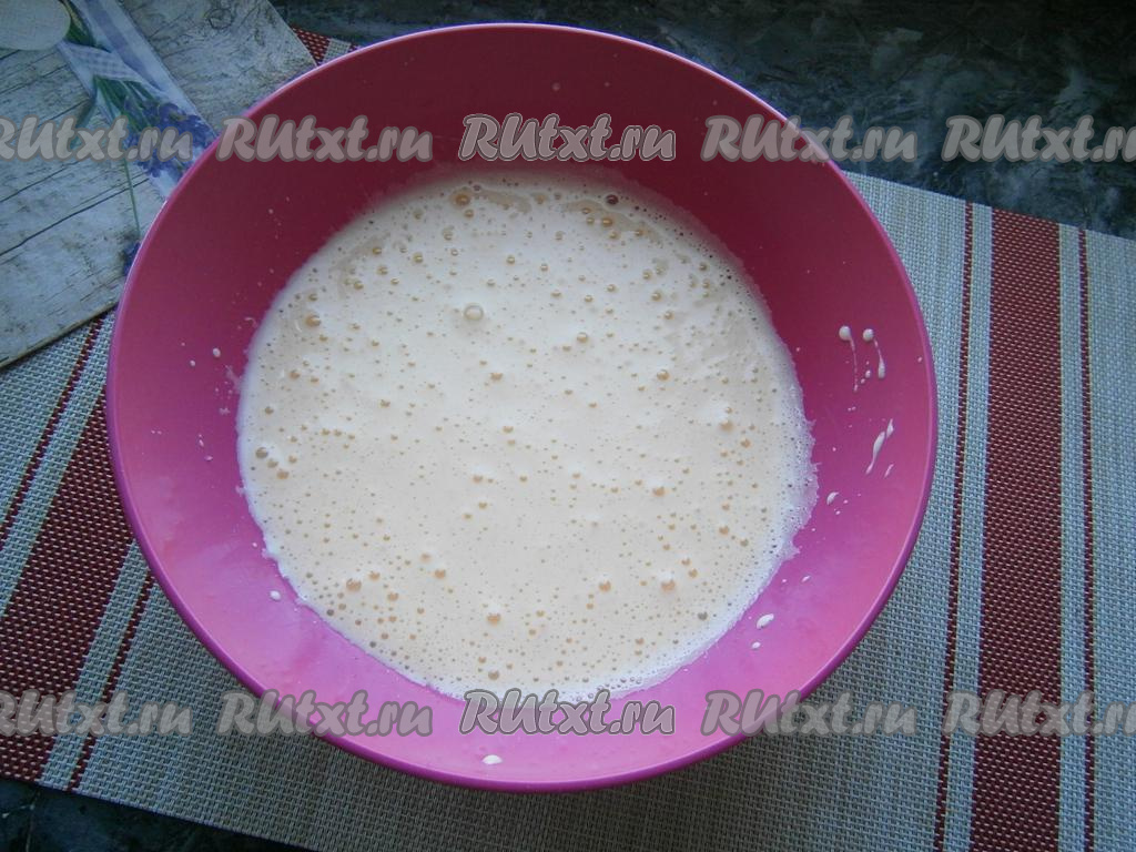 Получится бисквитное тесто, по консистенции похожее на негустую сметану.