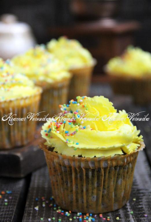 Вот такие красивые и очень вкусные капкейки с маком получились. Такая яркая домашняя выпечка украсит любой праздничный стол!