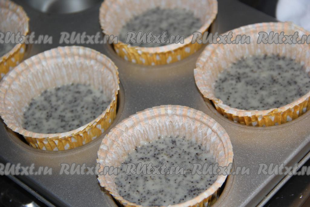 Выпекать капкейки с маком в разогретой духовке при температуре 200 градусов минут 25-30 минут. Проверить готовность сухой зубочисткой - при прокалывании готовой выпечки на зубочистке не будет следов теста.