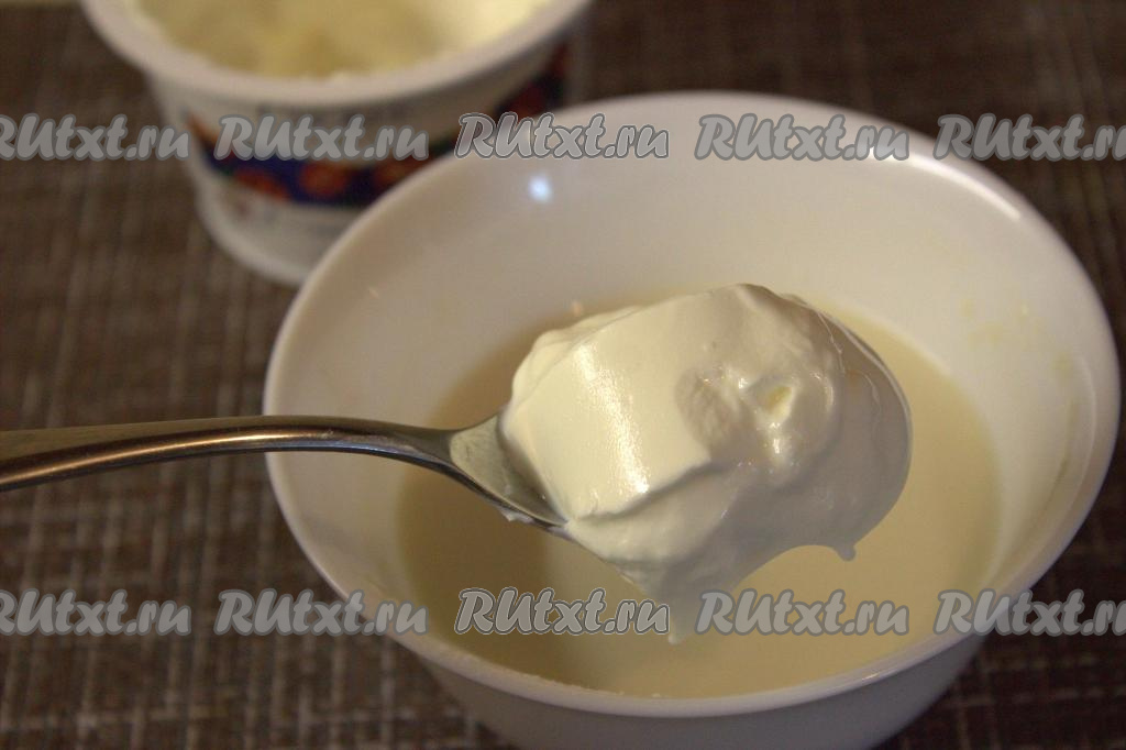 В глубокую миску всыпать 1 столовую ложку муки, затем, непрерывно перемешивая, влить небольшими порциями холодную воду, и размешать до однородности. В смесь муки и воды добавить сметану, ещё раз хорошо перемешать.