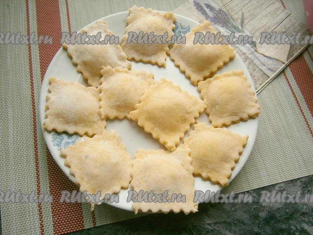 Из данного количества продуктов получится около 10-14 равиоли с сыром.