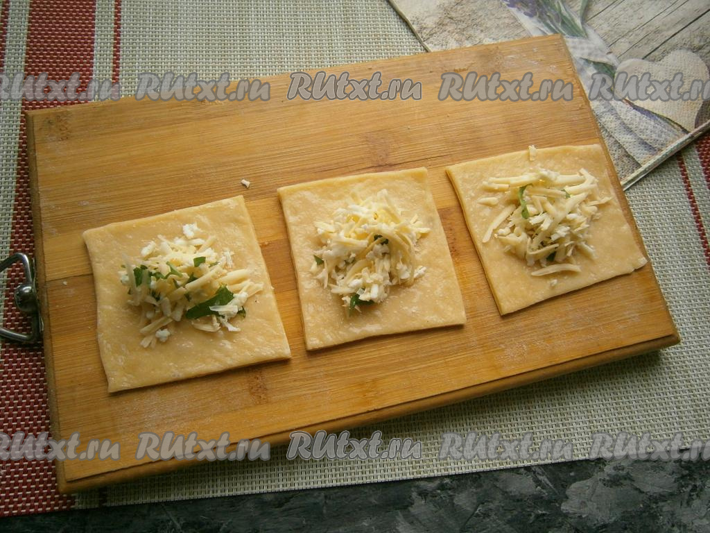 На часть квадратов выложить по 1 столовой ложке сырной начинки.
