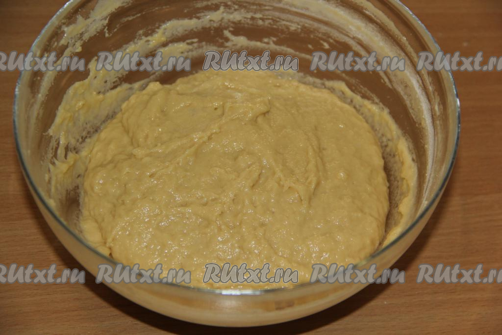 Перемешать тесто ложкой, оно получится липким и вязким. Оставить тесто на 1 час в тёплом месте.