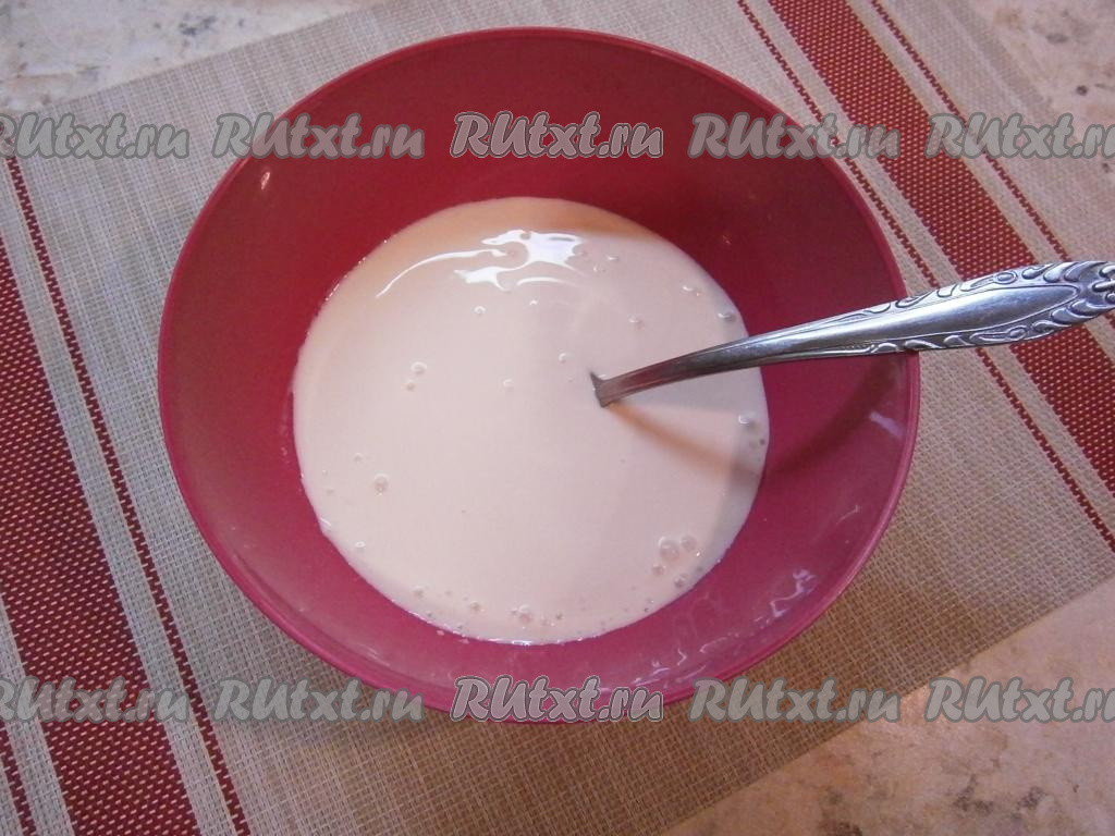 Ряженку комнатной температуры вылить в миску.