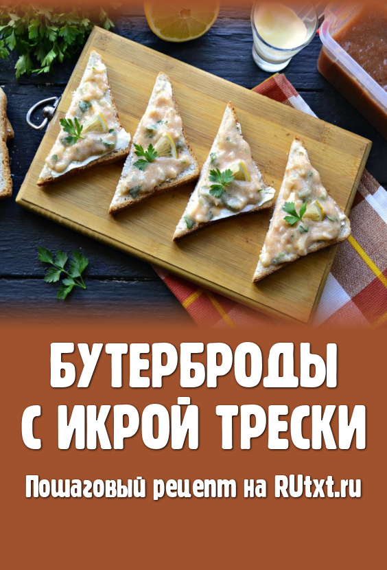 Предлагаю вам приготовить очень вкусные бутерброды с икрой трески. Такие бутербродики можно подать своим родным для перекуса или же предложить гостям. Мои гости закусывали этими бутербродами крепкие спиртные напитки - им понравилось! Икру вы можете приобрести в магазине, я использовала икру трески домашнего посола. Рекомендую, очень вкусные бутерброды!