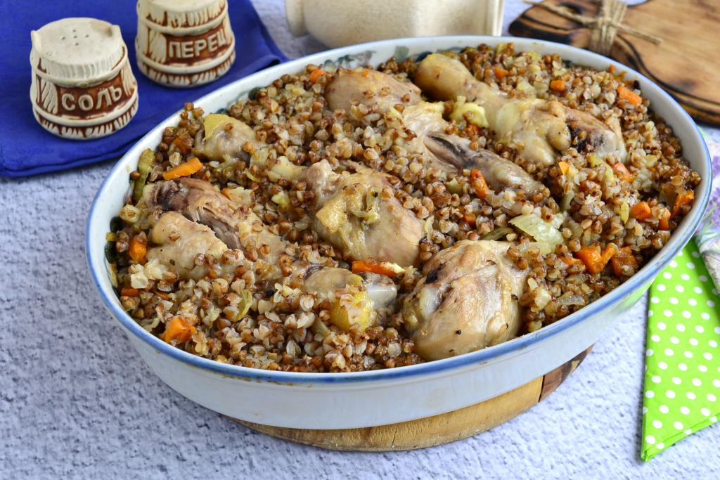 Куриные голени с гречкой в духовке