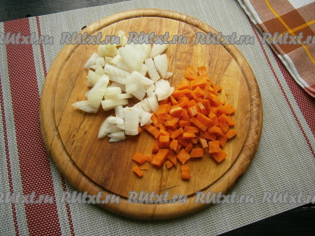 Лук и морковь очистить, нарезать кубиками.