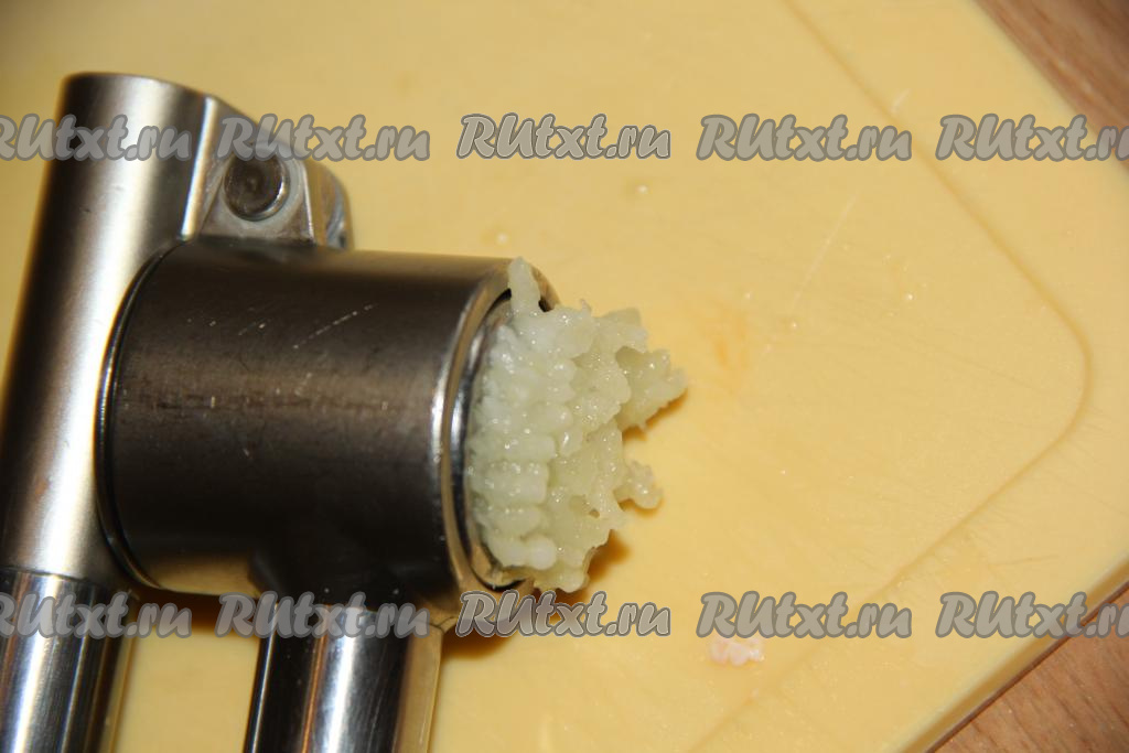 Пропустить через пресс очищенный чеснок.