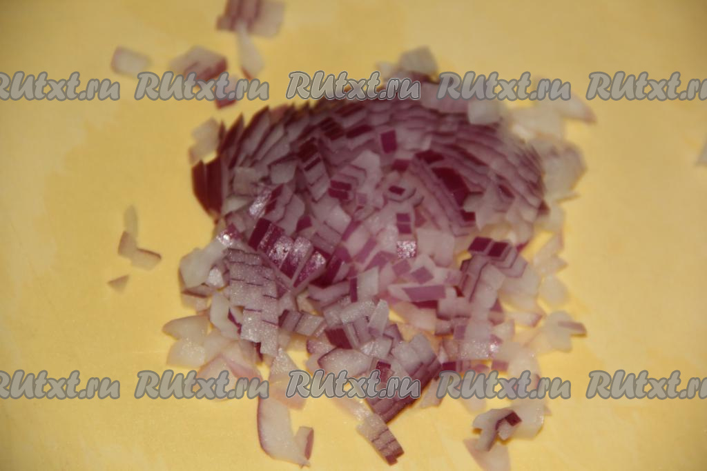 Очистить лук, а затем мелко нарезать.