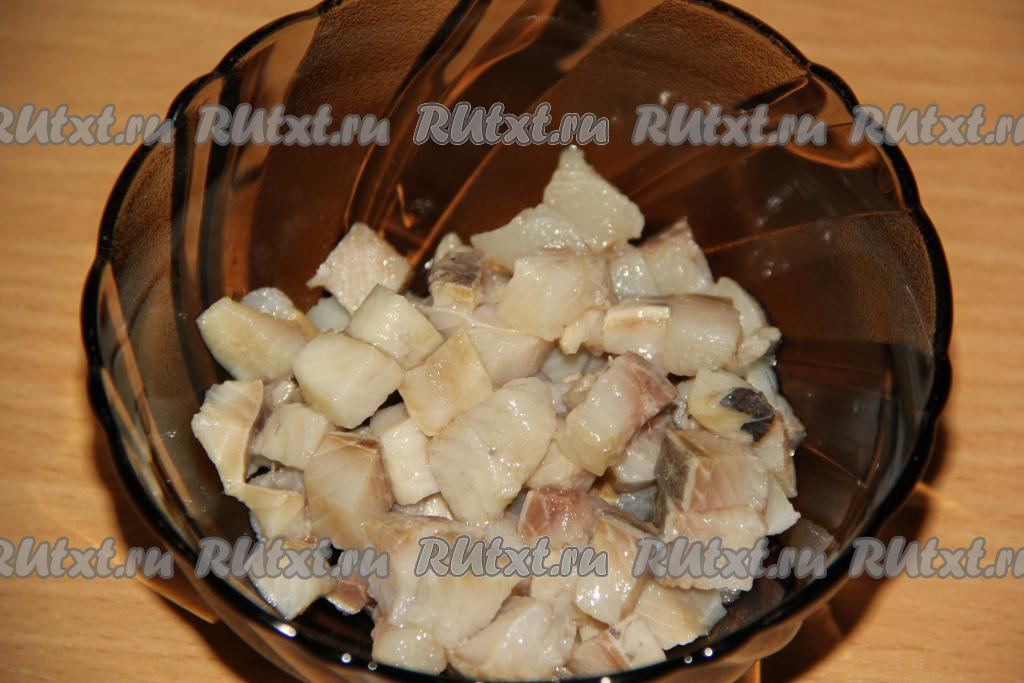 Пока запекается картошка, приготовим соус. Из сельди тщательно удалить все косточки. 200 грамм селёдки мелко нарезать.