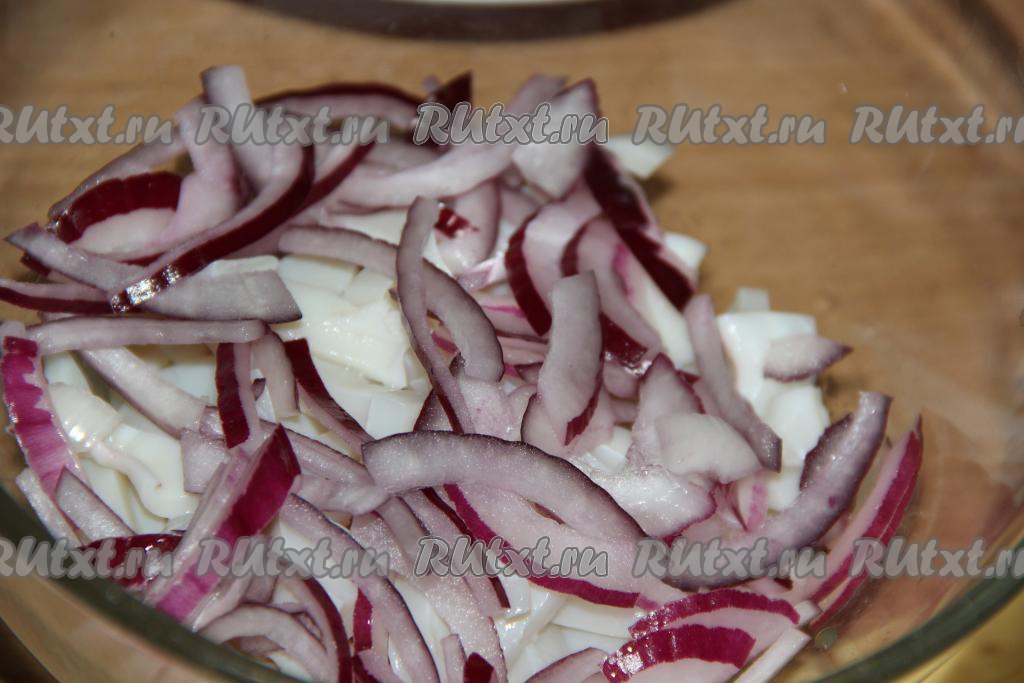 Очистить, а затем нарезать лук полукольцами.