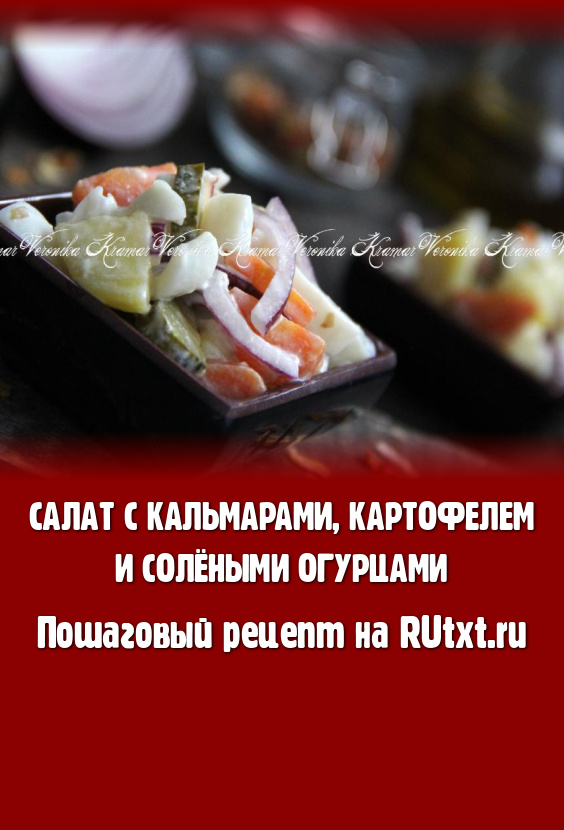 Предлагаю приготовить очень вкусный, сытный, яркий салат с кальмарами, картофелем, морковью и солёными огурцами. Все составляющие в этом блюде отлично гармонируют. Огурчики придают салатику особую пикантность. Такой салат можно подать не только в будни, но и на праздничный стол. Главное в этом блюде - это правильно сварить кальмаров, чтобы мясо получилось мягким. Если вы переварите кальмара, то его мясо станет на вкус "резиновым", что отрицательно отразится и на вкусе всего салата. Приготовьте салатик по этому рецепту и вы получите замечательное блюдо, в котором нежнейшие кальмары прекрасно сочетаются с овощами!
