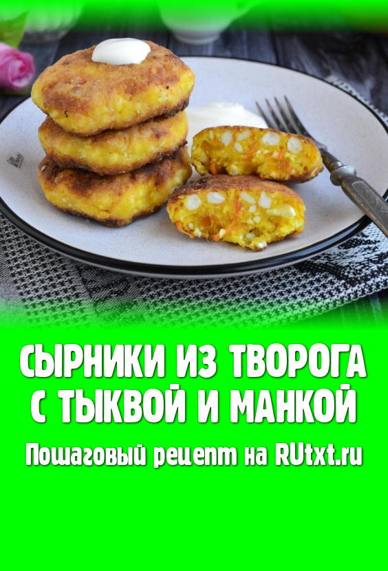 Сырники, приготовленные из творога с тыквой и манкой, - простое и очень вкусное, полезное блюдо, которое отлично подойдёт к завтраку. Подать их лучше всего со сметаной. Тыква в готовых сырниках практически не ощущается, зато придаёт красивейший солнечный жёлтый цвет. Я добавила в тесто немного кураги, можете не добавлять или заменить на изюм. Если взять крупнозернистый творог, при разломе сырников он будет выглядеть в виде беленьких вкраплений на жёлтом фоне - очень красиво! Тыкву для сырников лучше выбирать яркую и сладкую. Это полезное, аппетитное блюдо понравится и маленьким, и взрослым, попробуйте!